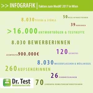 Vergangenen Freitag hat der MedAT seinen 5. Geburtstag gefeiert. So richtig in Partystimmung waren am Morgen des 7.7.2017 allerdings nur wenige der TestteilnehmerInnen in den Wiener Messehallen. Mit über 8.000 Anmeldungen hatten sich in diesem Jahr erneut mehr junge Männer und Frauen beworben als in den Jahren zuvor. Ca. 81 Prozent der BewerberInnen nahmen am Freitag leztlich am MedAT teil. Ein ähnliches Verhältnis zwischen BewerberInnen und TeilnehmerInnen gab es auch an den anderen MedAT-Standorten: In Innsbruck traten 2.811 von 3.672 BewerberInnen zum Test an, in Graz 2.712 von 3.359 und in Linz stellten sich 729 von 932 den Fragen des MedAT. Insgesamt sind 2017 österreichweit 12.760 von 15.993 BewerberInnen zum Medizinertest erschienen.